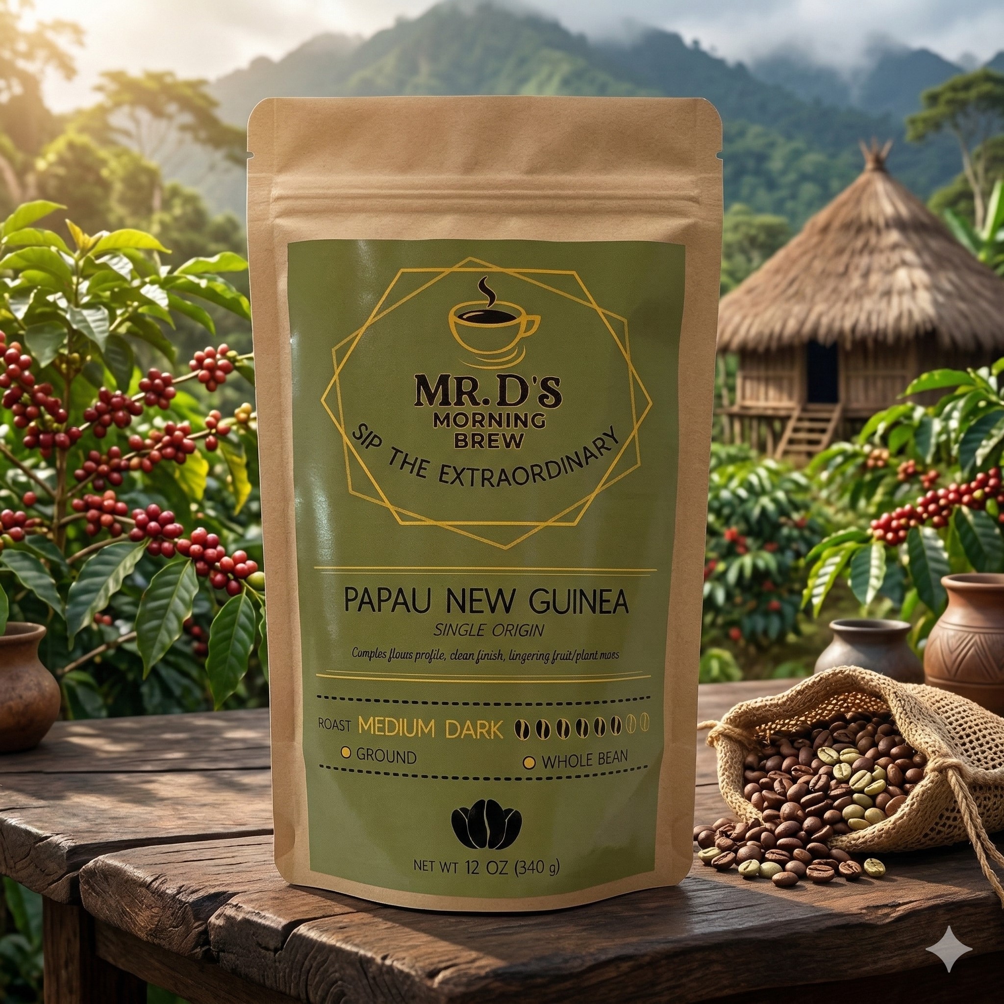 From the moment it brews, Papua New Guinea coffee releases an inviting aroma with hints of fruit and cocoa. The carefully roasted beans bring out a well-rounded flavor that combines brightness with smooth richness, creating a refined and enjoyable coffee experience.